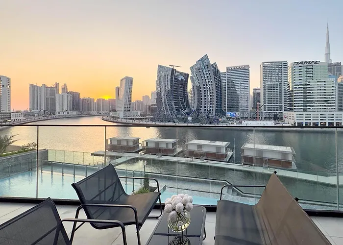 Sunset View Overlooking Burj Khalifa And Canal View Dubái, un apartamento de 124 m², está situado a 4 km del Zoológico de Dubái y ofrece una piscina.